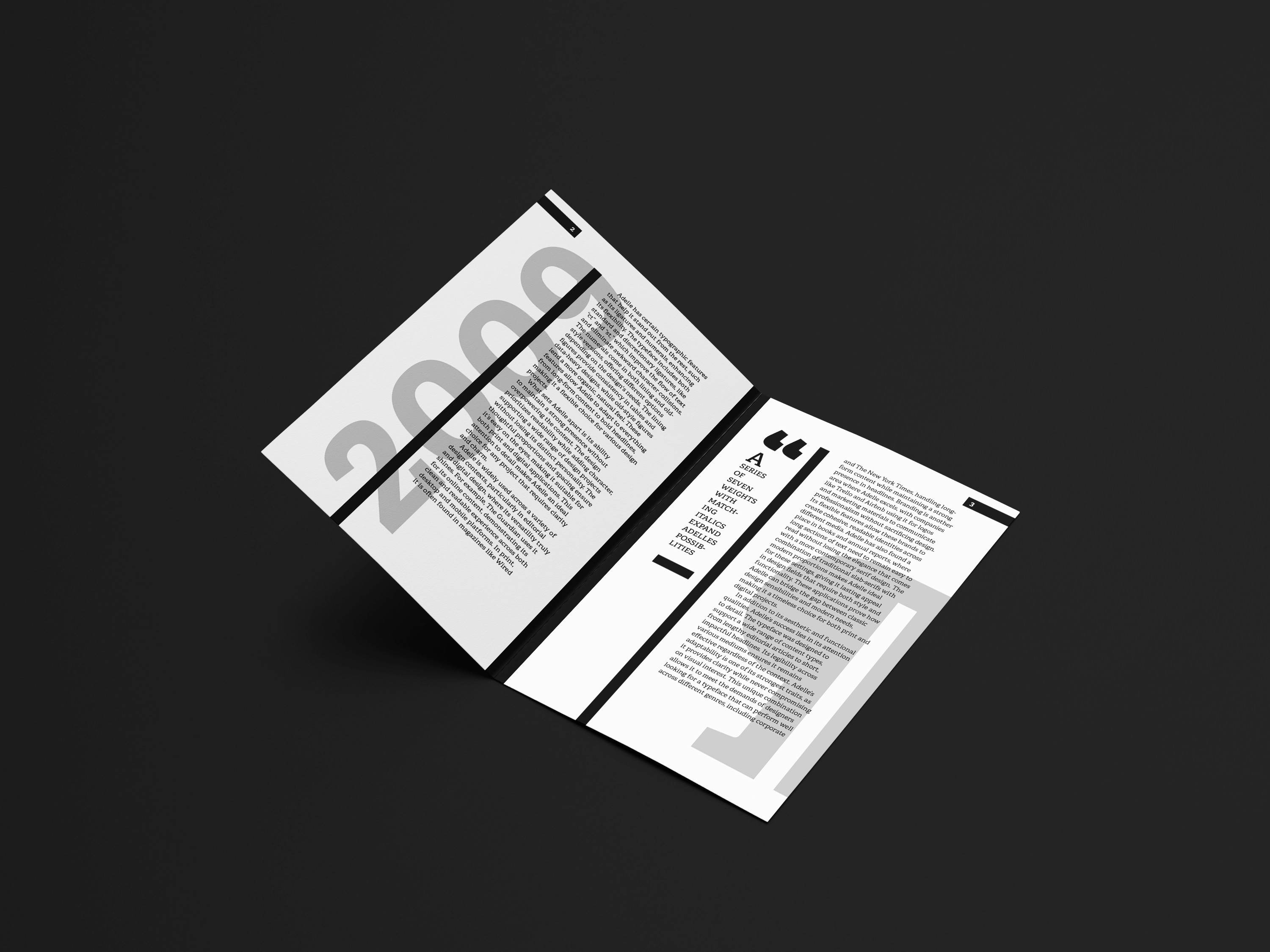 Created for a university typography course, this project explored the Adelle typeface through two editorial directions: one black-and-white layout and one color layout. The assignment focused on how graphic elements, spacing, hierarchy, and color can work with a typeface to shape a stronger editorial system without overpowering the letterforms themselves. I used InDesign to build the spreads and treat the project as both a font study and a publication design exercise.