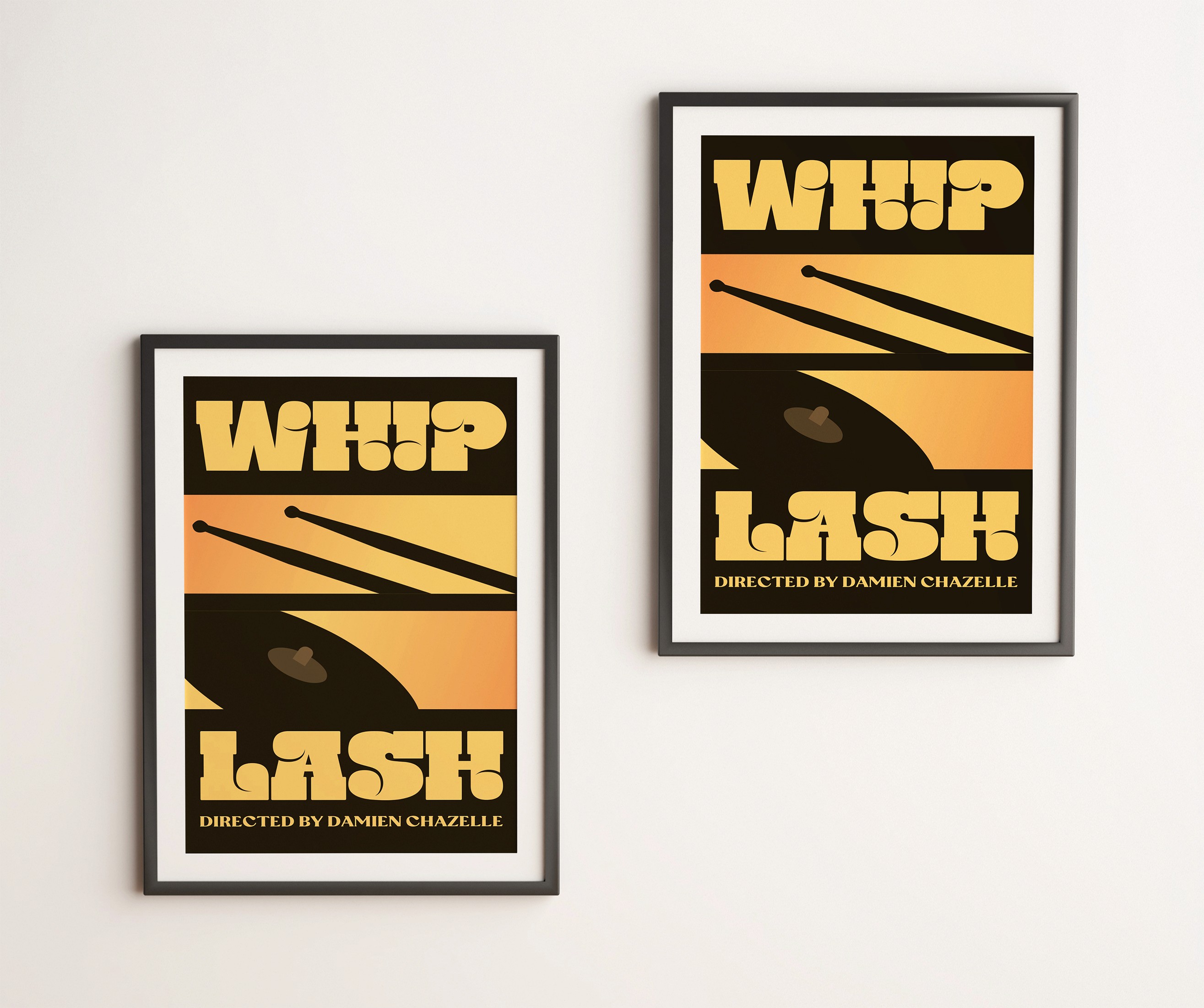 A minimalist poster for Whiplash built with flat shapes, reduced color, and a restrained print feel.