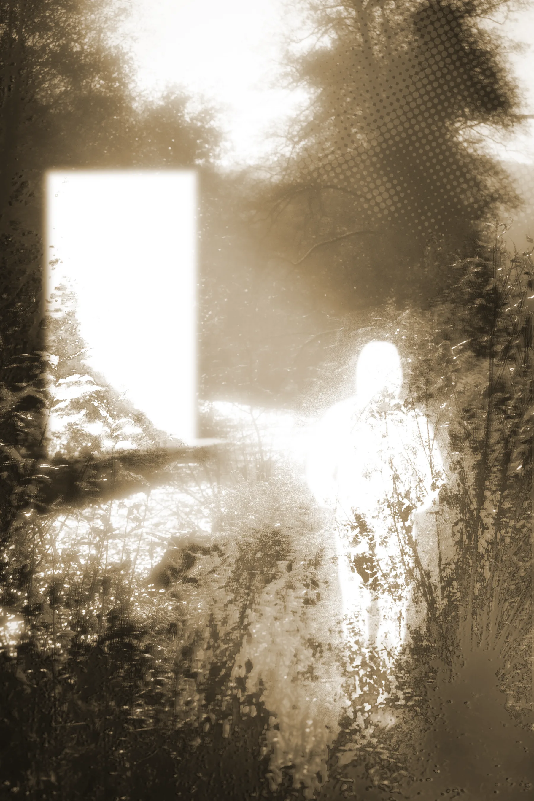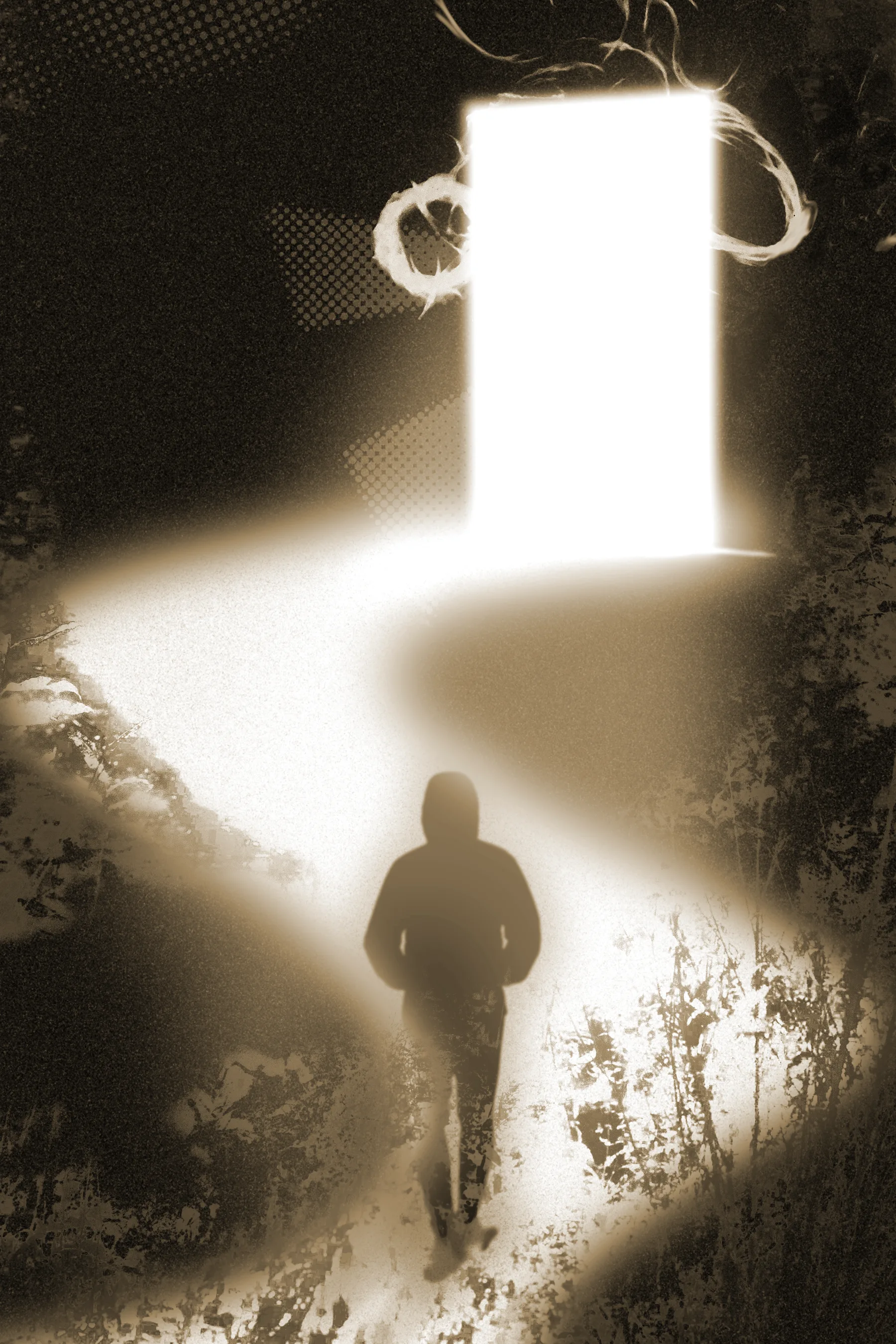 Created for an advanced digital imaging class, Replica Collages explores how people can get so focused on the idea of something better that they lose sight of the present. The series follows a single figure across three compositions. In the first, he stands in a beautiful environment but becomes drawn to a distant door across the water, a symbol of that imagined better life just out of reach. In the second, that fixation narrows his world as the surrounding details begin to fall away, leaving only a few foreground elements to show how locked in he has become. In the final piece, the pursuit consumes him and drops him back into reality, right where he started. I kept the work sepia toned with a dreamlike, vintage quality and focused on overexposure, texture, and a mix of photo realism and collage using scanned assets, including materials from black-and-white photo work and lumen prints.
