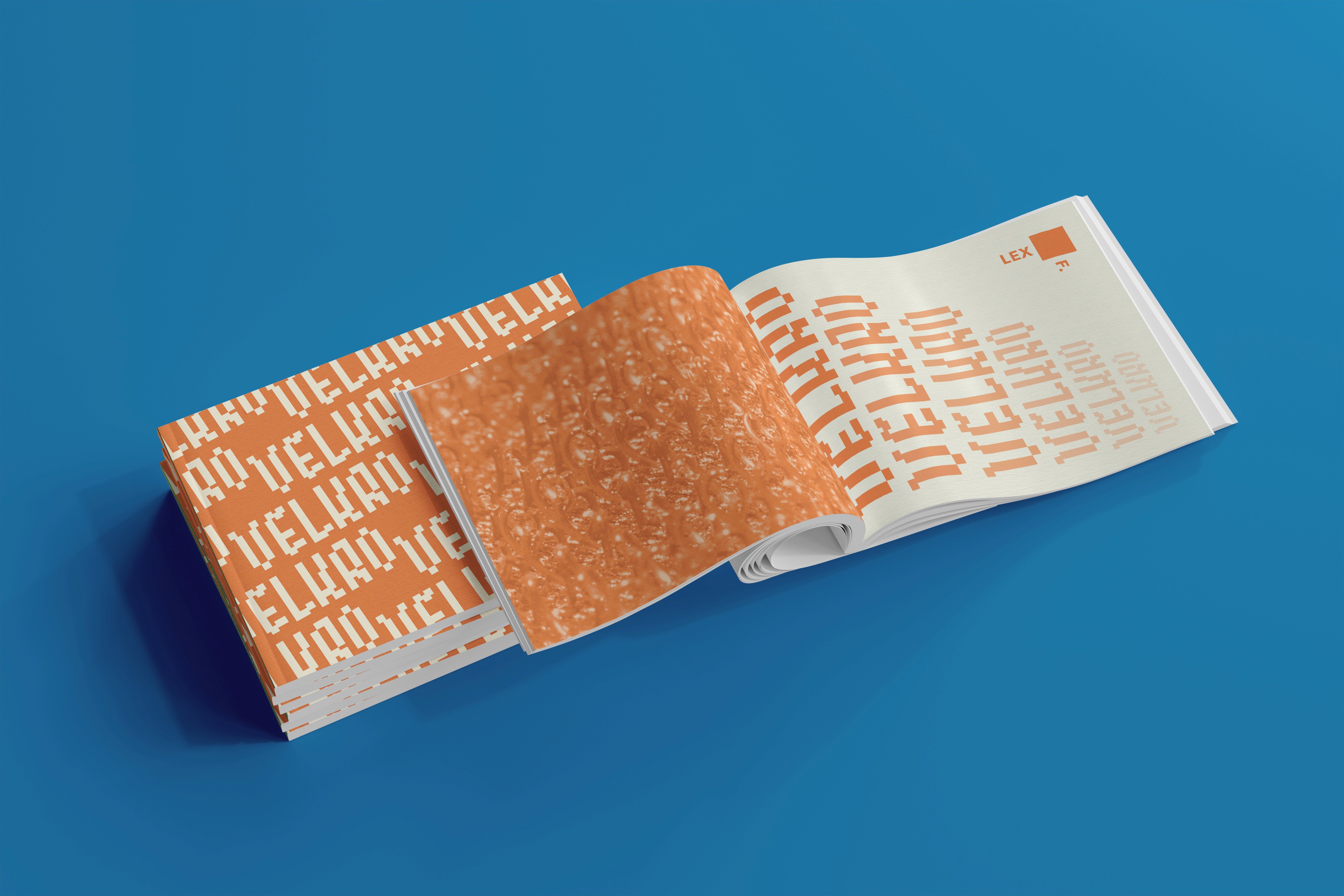 Velkro was a class project focused on creating a modular typeface and applying it beyond the letterforms themselves. I designed the font, then extended it into a poster and book-layout system to explore how the type could hold up across larger editorial compositions. The project was built in Illustrator and focused on creating a typeface with a distinct structure that still felt usable in real layouts.