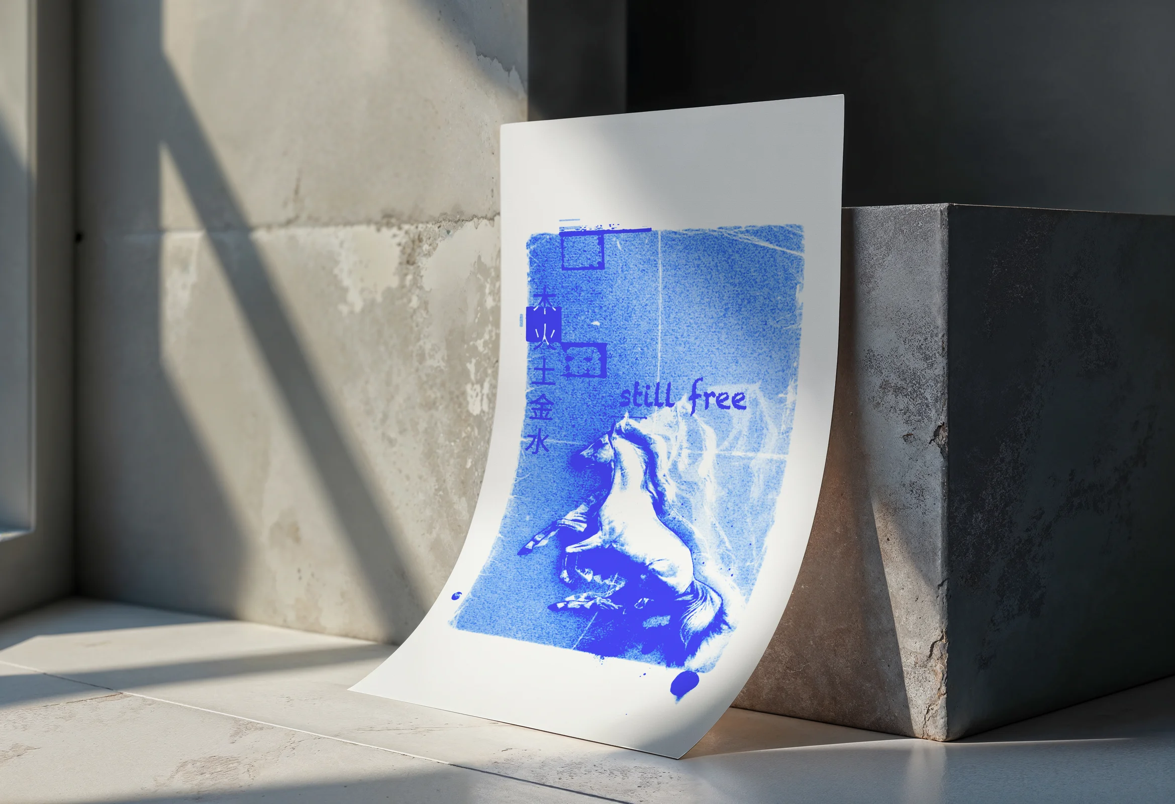 Year of the Horse is an animated poster series I created as a self-directed creative assignment to explore something new: animated posters. Inspired by current design trends and the significance of 2026 as the year of the horse, I wanted to build something rooted in vintage, silkscreen, and natural aesthetics that still felt commanding and striking. The design centers on blue-and-white contrast with layered textures and generous negative space that lets the composition breathe, while quick, deliberate animation draws the viewer's attention and holds their gaze, inviting closer inspection to discover the message beneath the surface. The goal was to create something tactile and timeless that captures attention in a moment while rewarding deeper observation.